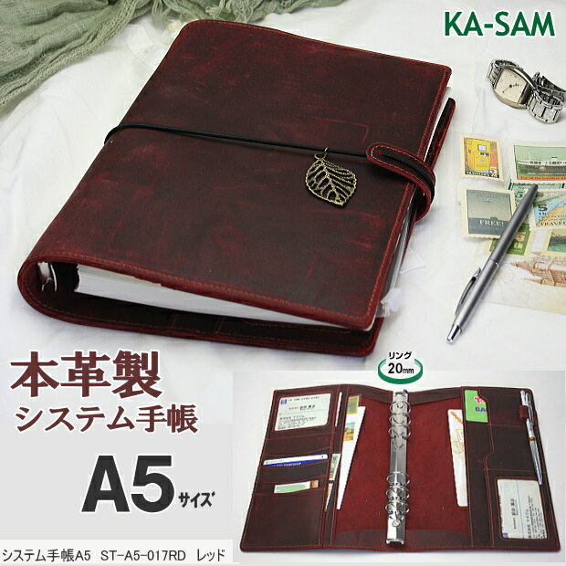 驚きの安さ 本革製システム手帳 A5サイズ6穴 レッド 赤い革の手帳 宅送 Www Technet 21 Org